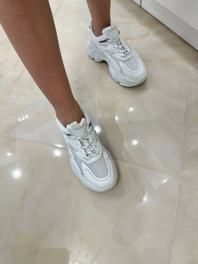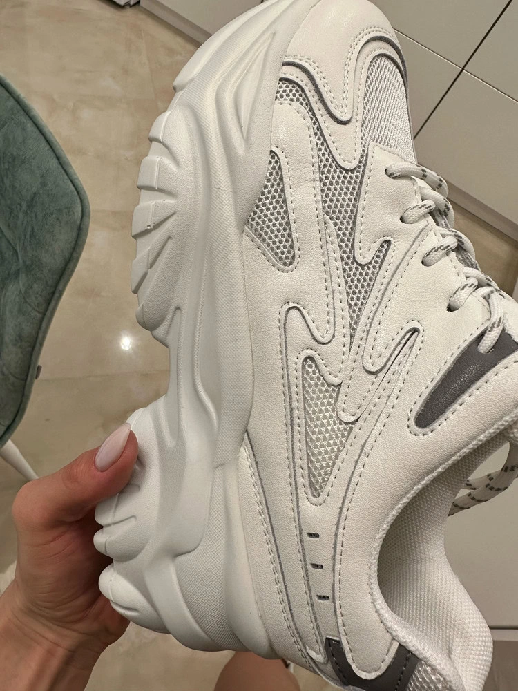 Мне понравились. Громоздко уж сильно не смотрятся, хотя подошва и высокая. Легкие по ощущениям. Думаю, кроссы идут скорее на узкую ногу. Сверху реально сетка, летом тоже должно быть комфортно за счет такой вентиляции. Запах клея поначалу присутствовал, даже усомнилась что это кожа, но он быстро выветрился. На подошве есть небольшие косячки типа пузырей, нотном не присматриваться, то Ок. Коробка конечно потасканная приехала, ну ладно уж, смирилась))