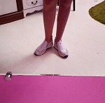 Чтобы измерить длину ступни, необходимо встать на ровную поверхность, слегка касаясь пяткой находящейся сзади перпендикулярной ровной поверхности, например, стены без плинтуса.