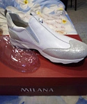 Стильные кроссовки женские - обувь для активных и жизнерадостных! Качественные материалы ботинок серебристых поддерживают комфорт ваших ног на протяжении всего дня, стелька кроссовок создает индивидуальную, максимально комфортную посадку. Новые модели полуботинок летних разнообразят ваш гардероб модными луками. Кеды из натуральной кожи идеально сочетаются с джинсами, штанами, платьем, юбкой и обладают ярким и привлекающим внимание дизайном! Изики кожаные станут отличным вариантом при выборе спортивной обуви. В них легко и удобно заниматься фитнесом. Кеды прекрасно подойдут для бега, для спорта и тренировок, а также для повседневной носки в офис, на прогулку или в школу. MILANA - международный бренд обуви и аксессуаров. Марка MILANA создана в 2001 г. Главный дизайнер марки - итальянец Эмилио Паскани. Родина бренда - главный город северной Италии - Милан 191284-1