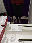 Чтобы измерить длину ступни, необходимо встать на ровную поверхность, слегка касаясь пяткой находящейся сзади перпендикулярной ровной поверхности, например, стены без плинтуса.