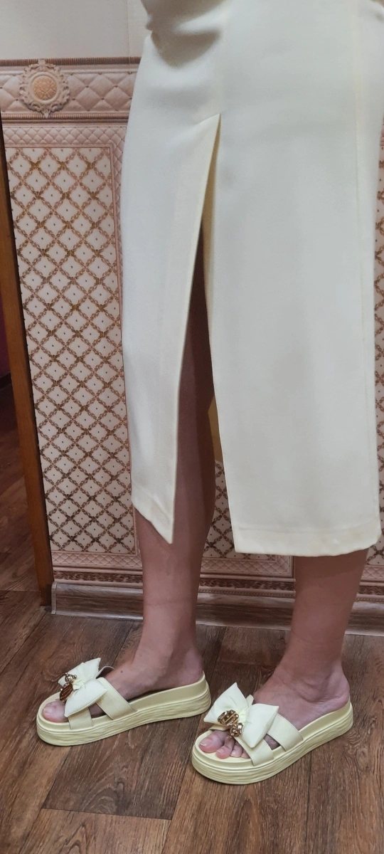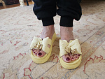 Шлепанцы очень удобные, красивый. Длина стопы 24 см. Подошли шлепанцы 38 размера. Очень довольна. Рекомендую