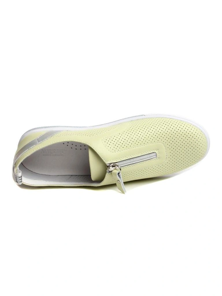 Слипоны женские из натуральной кожи от компании Milana. По-другому называют туфли, слиперы. Слипоны позволят вашим ножкам находиться в комфортном состоянии, так как внутренняя часть выполнена из натуральной кожи. Современный стиль отлично подходит для женщин и девушек. Отлично подойдут на теплое время года: лето, позднюю весну, раннюю осень. Модель представлена в светло-зеленом цвете, под любой образ и стиль одежды. Это идеальные женские туфли для всех модных трендов года. Такую обувь можно сочетать с брюками, юбками, легко впишутся в любой образ от делового до повседневного. Туфли предназначены для торжества, повседневных прогулок, в школу и университет, на работу, в офис и автоледи. Коллекция для людей высокого и среднего роста. Отлично подойдут как для тех, кто любит классическую обувь в образе, так и для тех, кто любит удобную обувь для вождения автомобиля. Рекомендуем наши слипоны не только из-за внешнего вида, но также если вы ищете надежную качественную обувь. Обувь плотно фиксируется на ноге. Слипоны выполнены из высококачественных натуральных материалов, выглядят современно и модно. Стильный и минималистичный дизайн наших туфель отлично подчеркивает светло-зеленый цвет. Туфли делают ходьбу максимально естественной и непринужденной, имеют закругленный мысок. Крепкая подошва и мягкая стелька подарят легкость и уверенность вашей походке. Подошва устойчива, удобна даже при длительной ходьбе и не вызывает чувства дискомфорта. Крепкий современный материал подошвы резина отлично противостоит истиранию, его превосходные амортизирующие свойства позволяют избежать усталости ног. Обувь подойдет для средней стопы и будет удобна для ходьбы по асфальту и твердому грунту. Дизайн модели разработан в Италии. Туфли станут отличным подарком вашей сестре, девушке, подруге или дочери на новый год или рождество, 14 февраля, а также маме на день рождения, для вашей любимой на 8 марта.