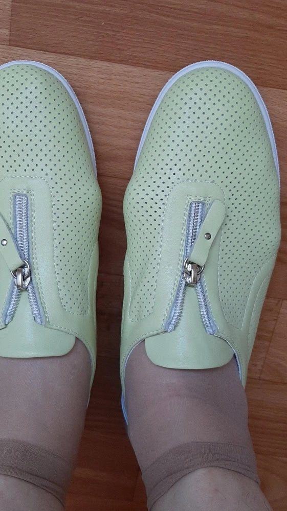 Уже ношу такие белые. Для проблемных ног очень удобные, мягкие. Выглядят симпатично, цвет как на фото , зелено-желтый. Красивые. 41й взяла на 40й, разница между 40 и 41 небольшая