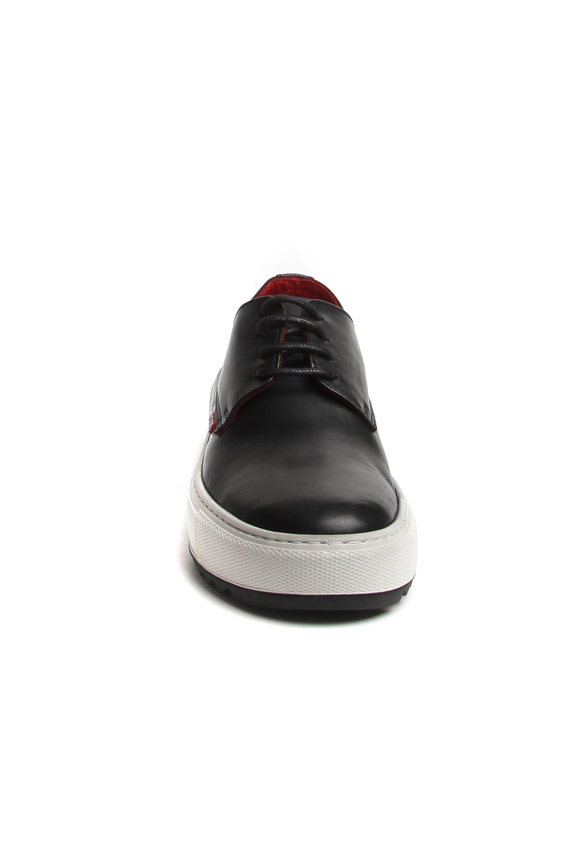 Внутри кожа красного цвета, в носочной части - текстиль.