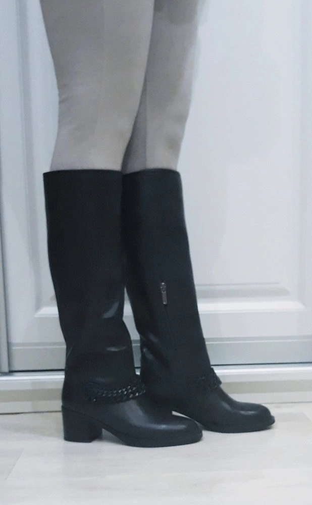 Сапоги очень хорошего качества . Кожа мягкая . Цепочки качественные. Большемерят на подразмера