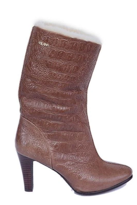 на стандартный росс.38 (высокий подъем, средняя полнота) заказанный 39 оказался большим. В подъеме оделся хорошо, без проблем. Внутри достаточно толстая шерсть. И как то странно сел на голени, сзади. Ни в подсобранном, ни в закатанном, ни уже тем более в расправленном виде не украсил. По качеству - хорошая плотная кожа, внешне понравились. И еще на мой взгляд подошва скользковата для зимы.