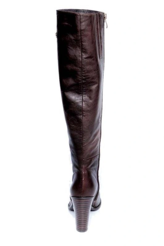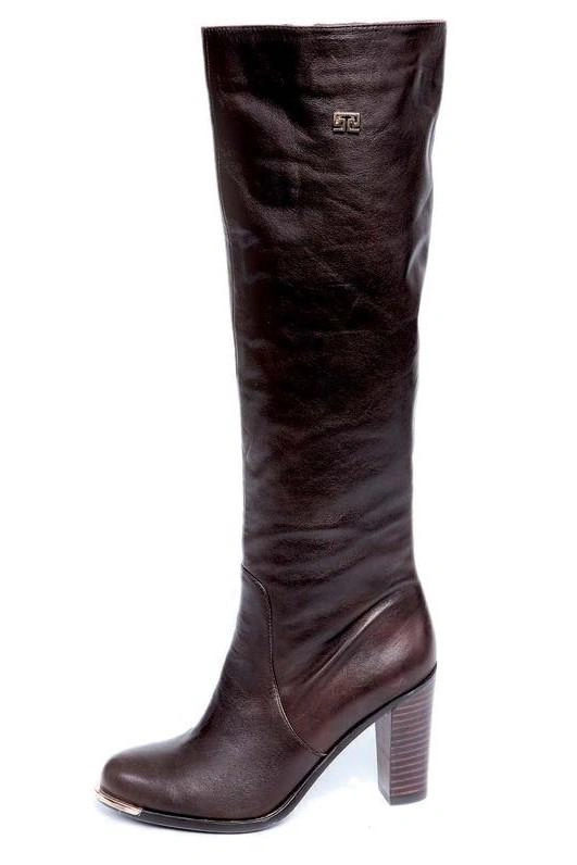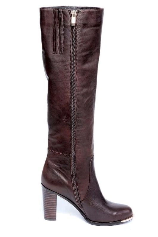 Сапожки прелесть! Кожа тонкая, почти перчаточная, каблук устойчивый, на мой рост 170 - под колено, но мне нравится делать "гармошку" на щиколотках. Чуточку узковаты на мою широкую да с "косточкой" лапку, но после третьей носки ощущение зажатости прошло. На мой 39 подошёл 40 размер.Спасибо магазину
