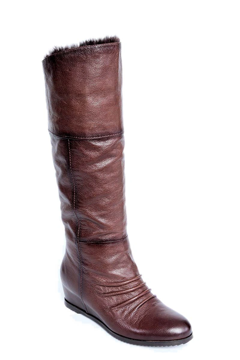 Сапожки неплохие, выглядят достойно, но кожа жестковата, немного "картонит", маломерки, ношу 39 раз., заказала 41р. по ступне подошли отлично, а вот начиная от щиколотки они огромны, на очень полные ноги. Отказ т.к. очень широки.