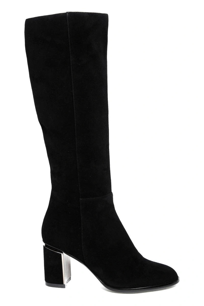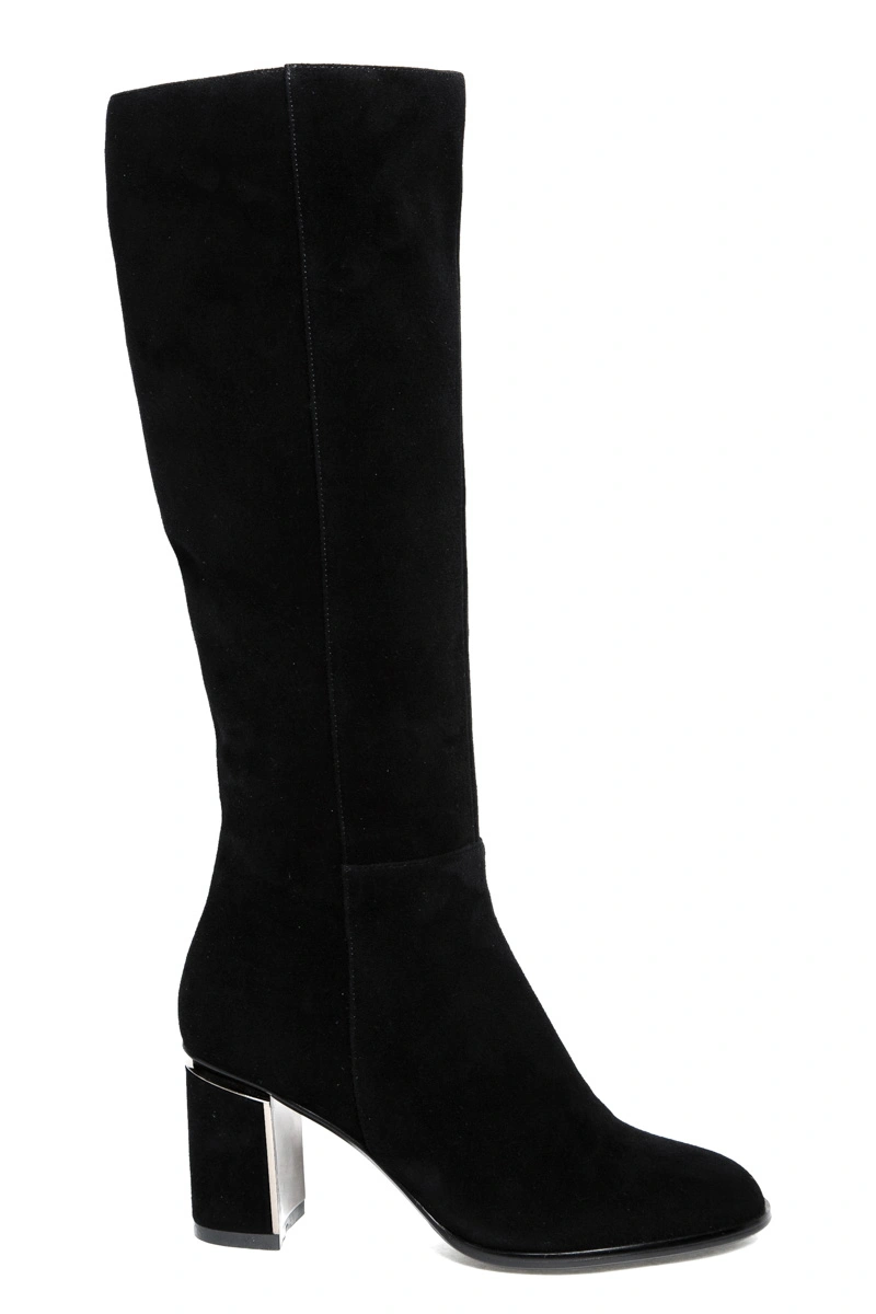 Размер соответствует, голенище на полную ножку не застегнулось, хотя можно было, наверное, растянуть. Качество изготовления и материалов отличное, замша черная-черная, устойчивый и комфортный каблук. Что не понравилось: подкладка - ворсистый искусственный материал, и нога внутри как бы скользит, несмотря на соответствие размера. Это ощущение показалось некомфортным, отказ.
