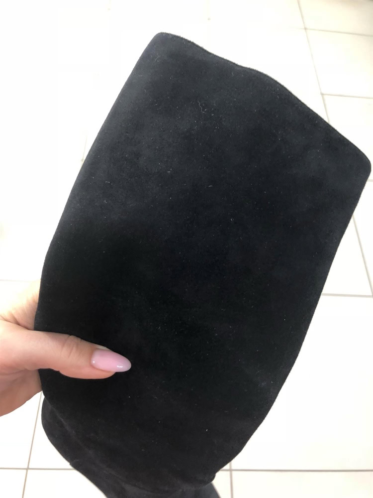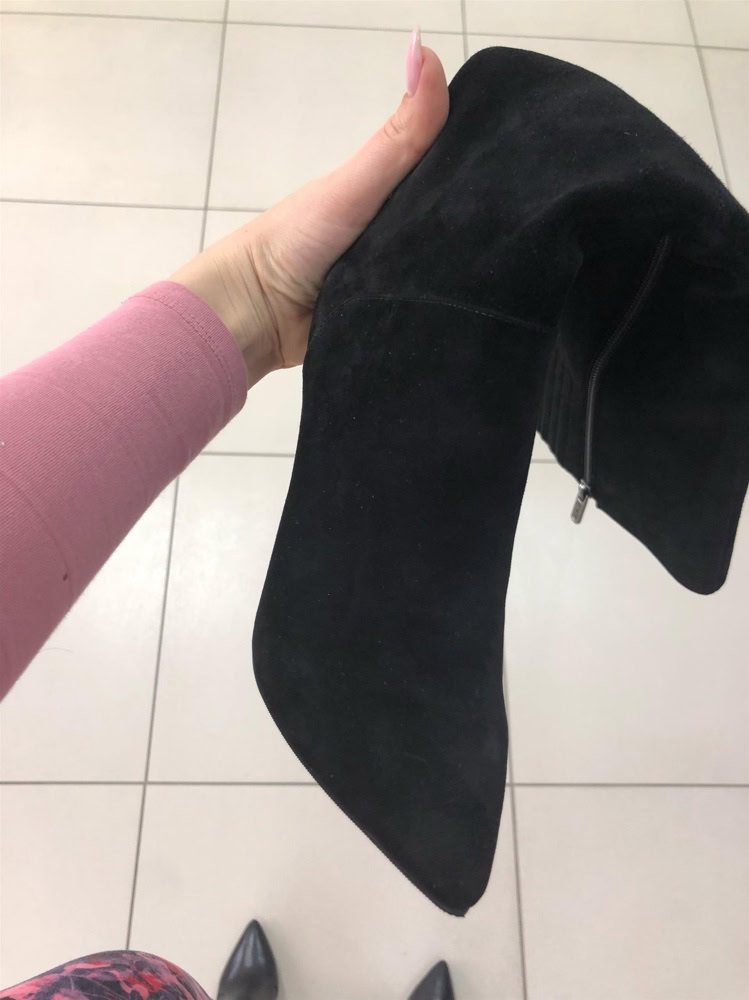 Сапоги запали в душу. Моя мечта. Но к сожалению в икрах еле-еле стянула. На длину стопы 24, на 24,5 очень впритык. Буду ждать свой размер. Замша очень приятная на ощупь