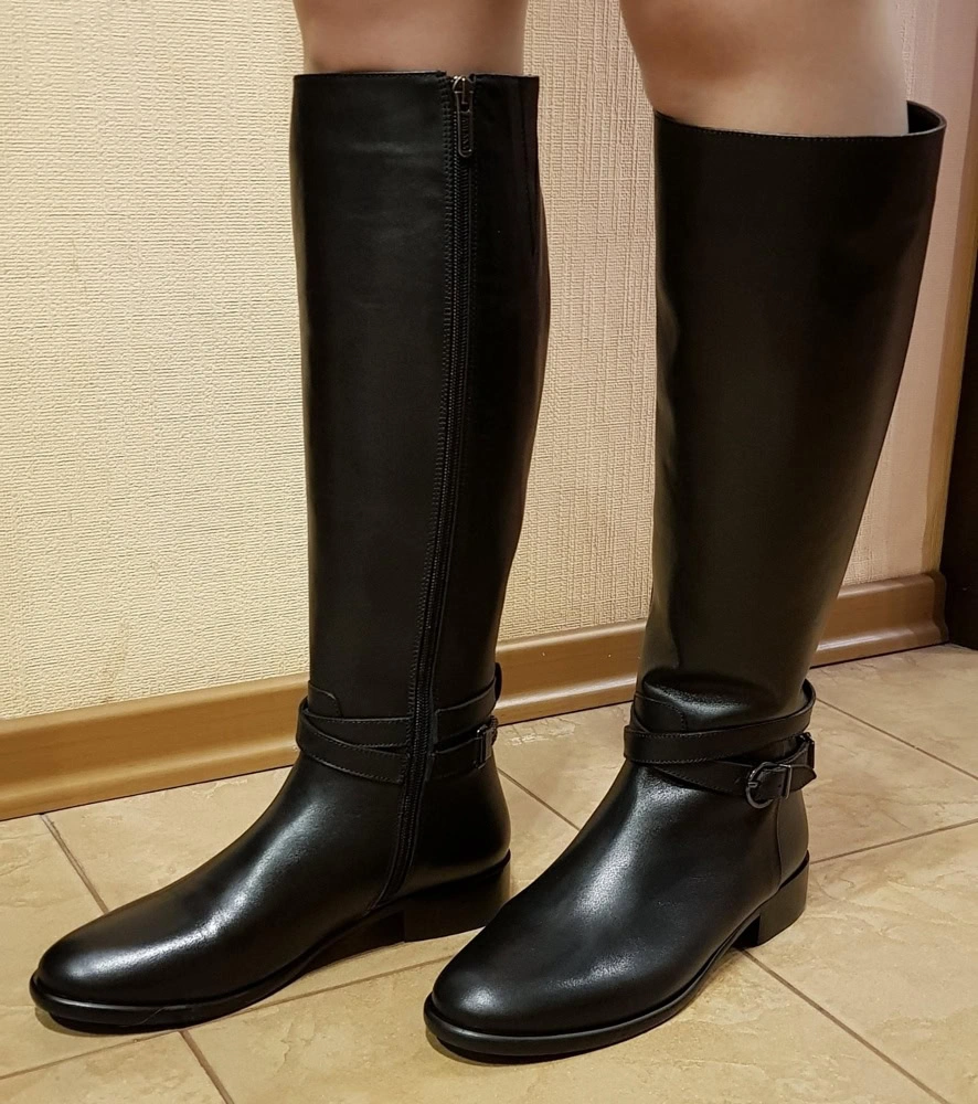 К сапогам претензий нет. Аккуратные, удобные. Теперь по параметрам. Обычно заказываю 40, здесь заказала 39 согласно таблицы размеров. Нога у меня узкая, обхват в районе щиколотки 22 см, голень 39.5 см. Так вот в стопе они подошли. В голени при росте 1,67 под самое колено, вверху не прибегают. В районе щиколотки очень широкие. Пришлось отказаться.