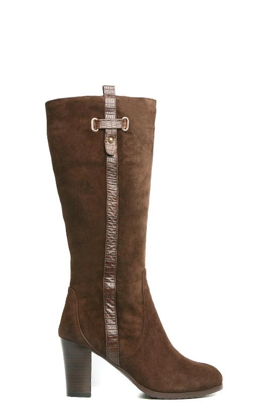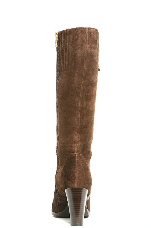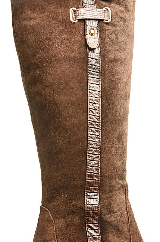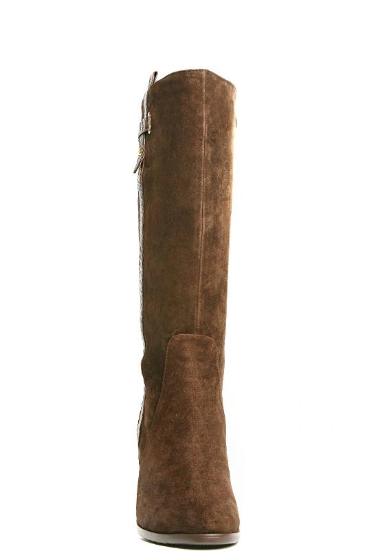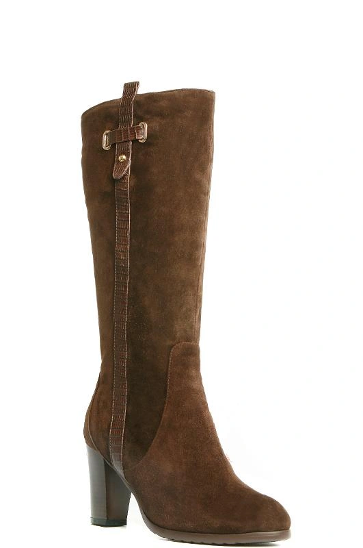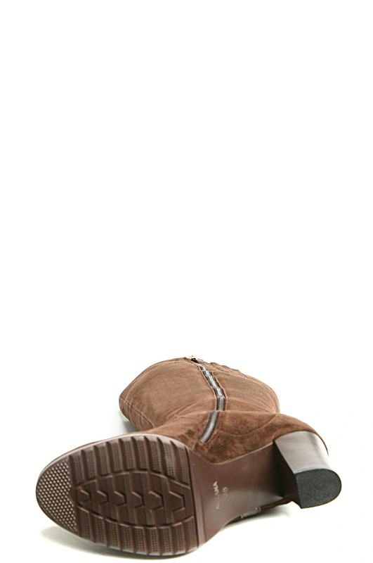 Сапоги классического стиля, внешне красивые, с декоративной кожаной полоской. Натуральная меховая подкладка по всей внутренней поверхности. Колодка удобная, каблук наборный, не слишком высокий, для зимнего периода удобно.