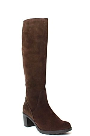 Замша хорошего качества, мех жидковат. Сапожки на среднюю или полную ножку. Каблук небольшой. Взяла, потому что нужны были замшевые коричневые сапоги.
