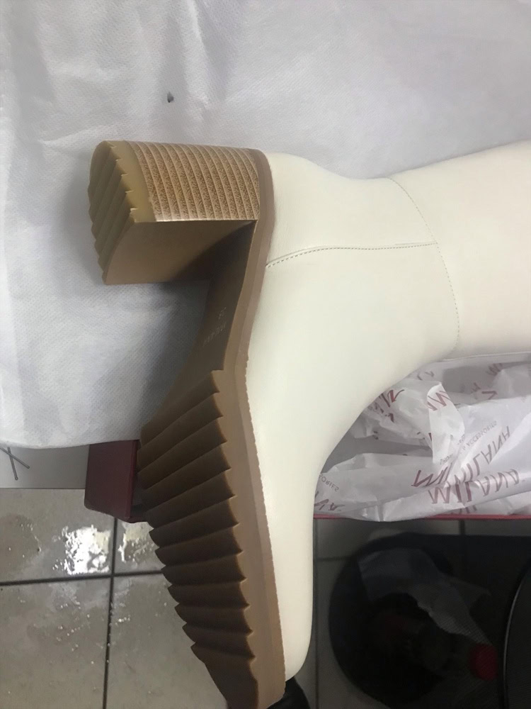 И вторая причина отказа это брак. В 37 размере сапоги были одни, я их заказала, но они с браком. В верхней части голенища дырка, как будто чем-то кожа прожжена. Обратилась к менеджеру, она должна была оформить брак.