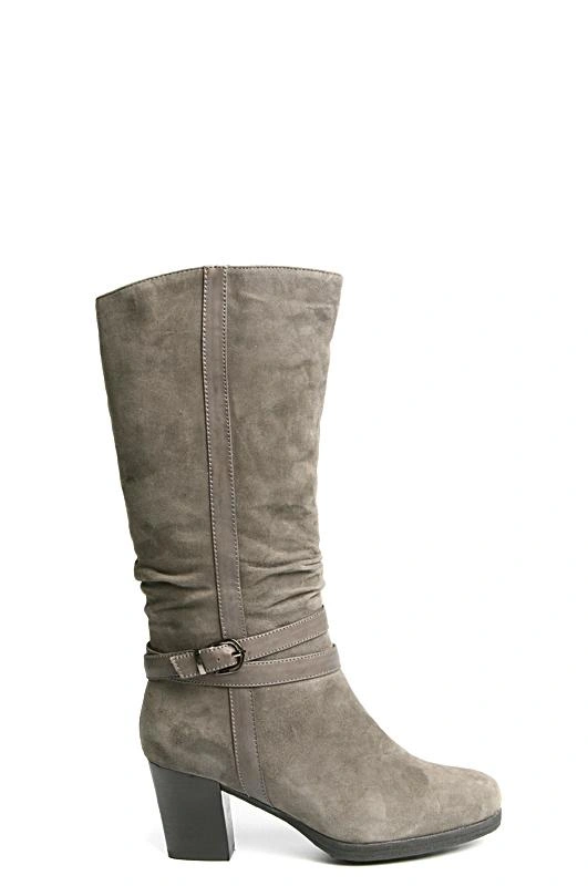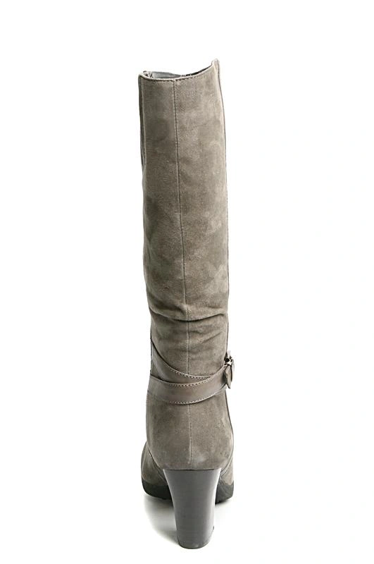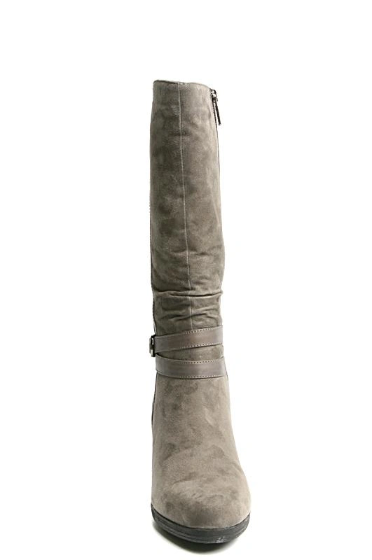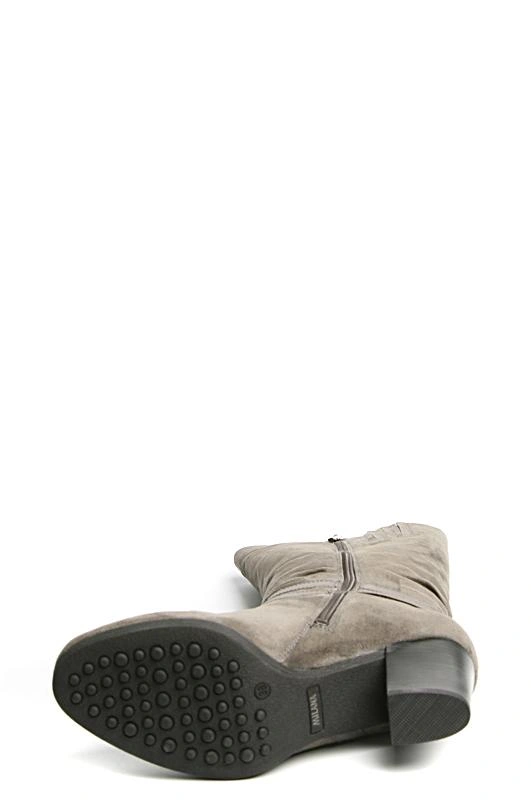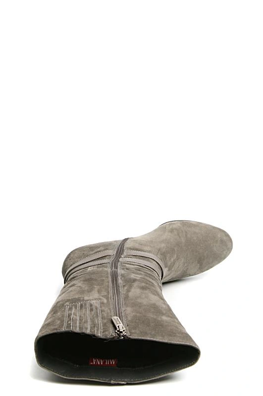 Цвет серый! даже слегка с зеленцой ))) цвету на фото не соответствует. 39 размер подошел, колодка удобная, но жестковаты, день поносила, решила отдохнуть. Не скользские. Замша сильно ворсистая. На худой ноге голенище не очень плотно прилегает, в районе щиколотки облегание среднее. Внутри полностью мех, средней плотности.