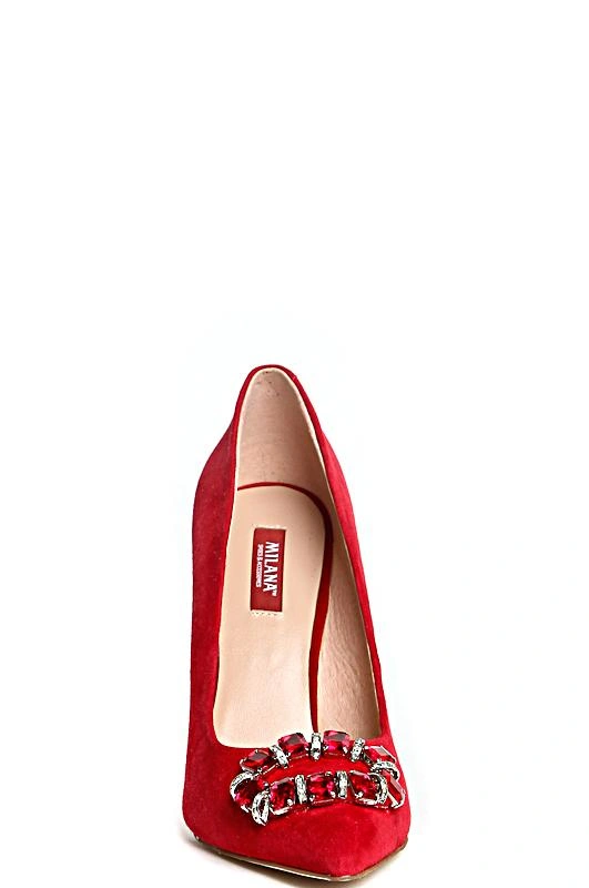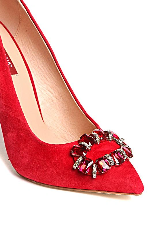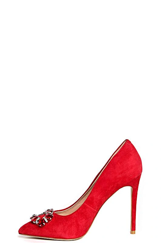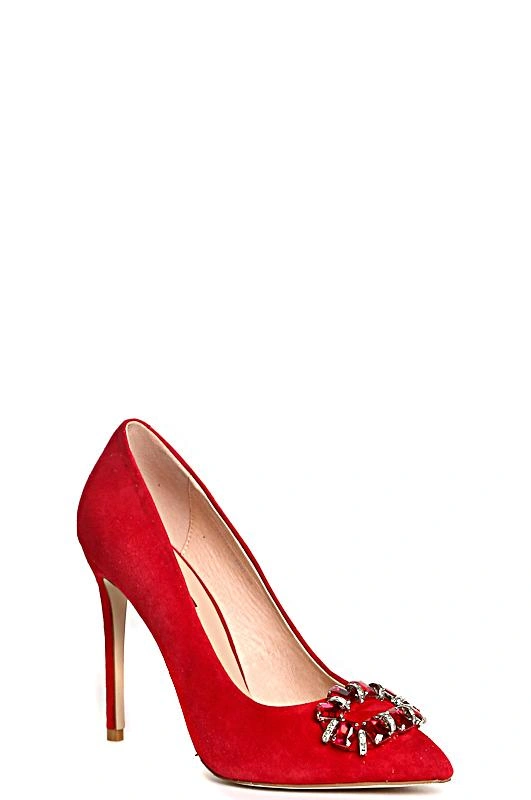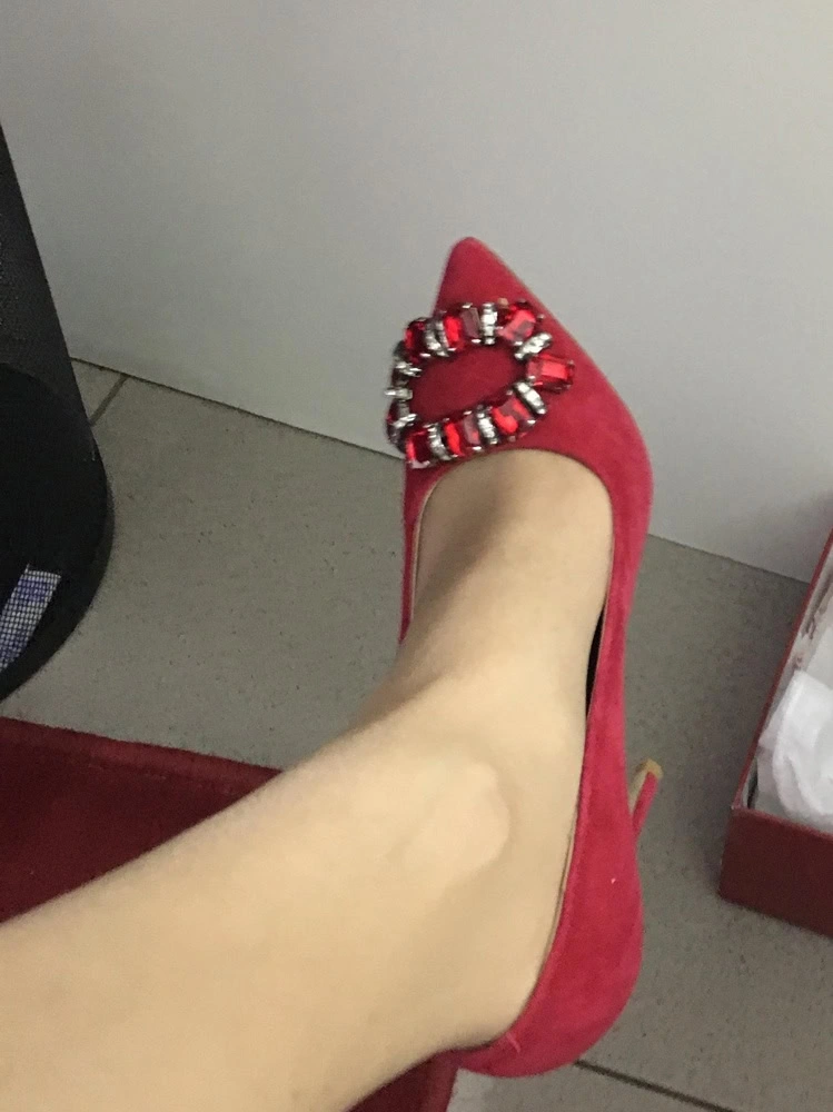 Хорошие туфли. Красного цвета, брошь красивая, смотрится отлично, сделана качественно как и сами туфли. Размер соответствует полностью, на узкую ножку 35 размера сели хорошо. Каблук высокий , ходить может и не очень удобно, но эти туфли на шпильке и не предусмотрены для постоянной носки.