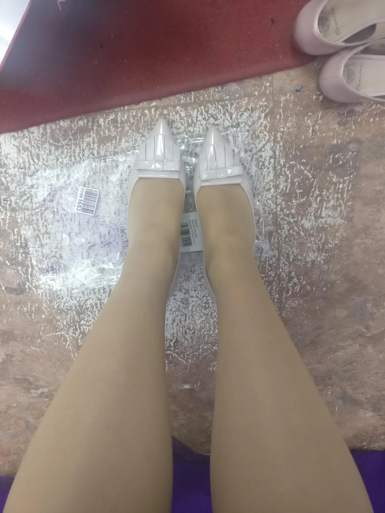 Не выкупила 39-й на свой 38,5-39 за 2470 руб. Туфельки милые, но ноги как в тисках. Не поняла, - потому что маломерят или на узкую ногу. У меня средняя полнота. Очень жаль. Еще не понравился "вид сверху". Показалось, что квадратная форма банта удлиняет и утяжеляет носок, делает его громоздким. Зато подошва - термопласт, не должно быть сносу ей. А насчет "Тип подошвы: светящаяся" - похоже, составитель описания хлебнул лишнего, и ему что-то "присветилось"))) Цвет назвала бы молочно-розовым.
