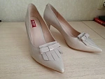 Очень приятные туфли, милые, качественные. Цвет розовато-пудровый. Удобный каблук. На 39 размер 39 сел хорошо. Показалось, что скорее на узкую ногу. Отказ в пользу другой модели.