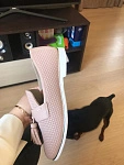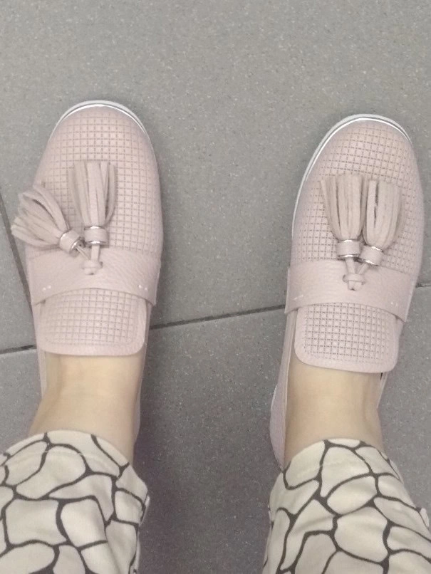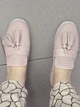 Очень классные стильные тапочки! Мягкая стелька и очень мягкая кожа! Пахнет тоже кожей. Вот только очень плоский нос, плющит и давит пальцы сверху... Надеюсь разносить все же. Цвет с розовинкой. На 23,5 см взяла 36 размер - впритык, но, опять же, скорее из-за высоты носа, по длине все нормально.