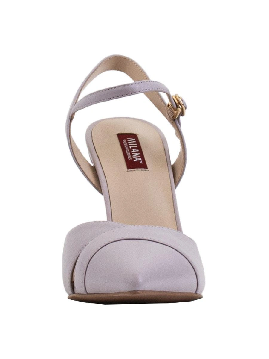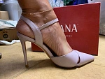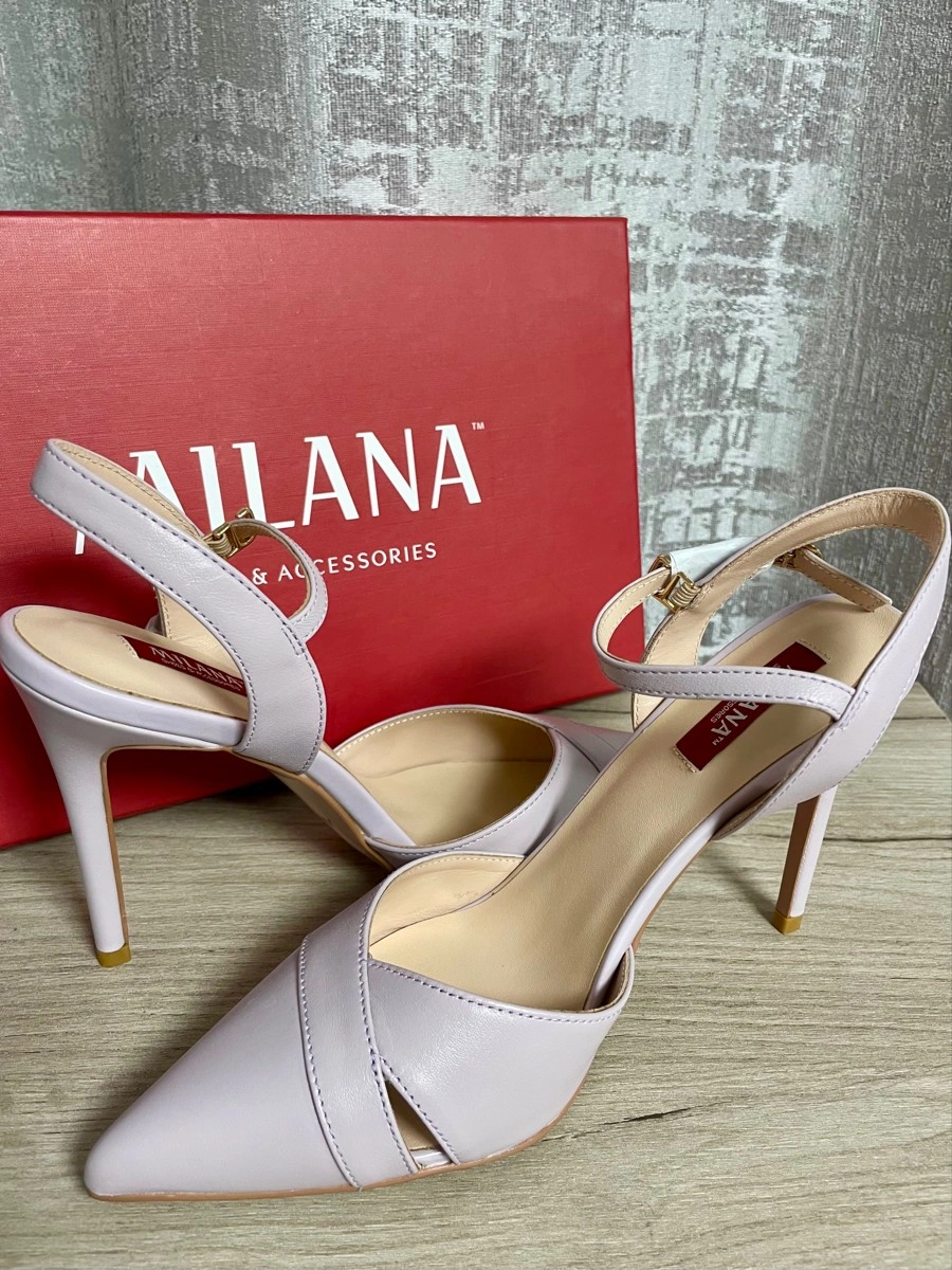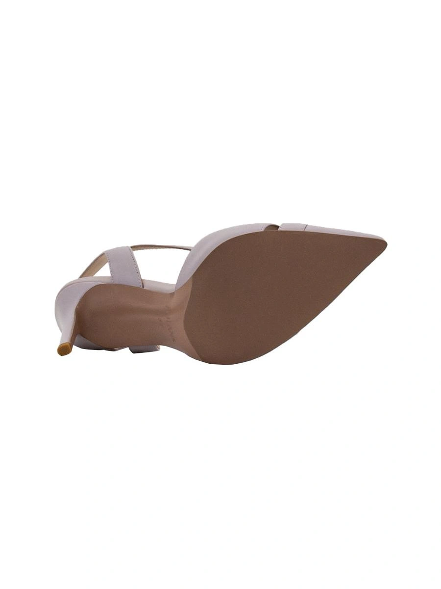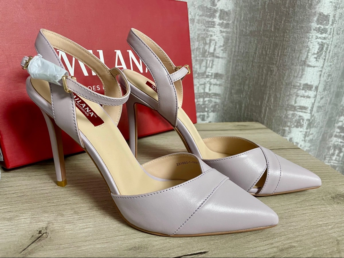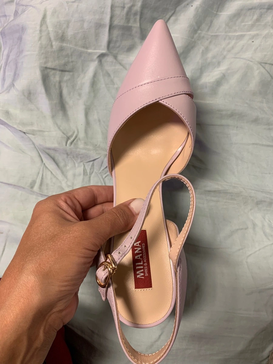 Туфли 36 размера немного маломерит, но ввиду отсутствия задника это неудобств не доставляет, в носовой части не жмут. Цвет серо-сиреневый. Выглядят красиво.