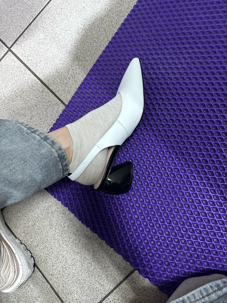 Классные туфли,так жалко что не подошли,маломерят на размер,немного пятка вышла за пределы,а так мягкие и удобные,я так их ждала...но увы...