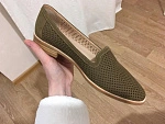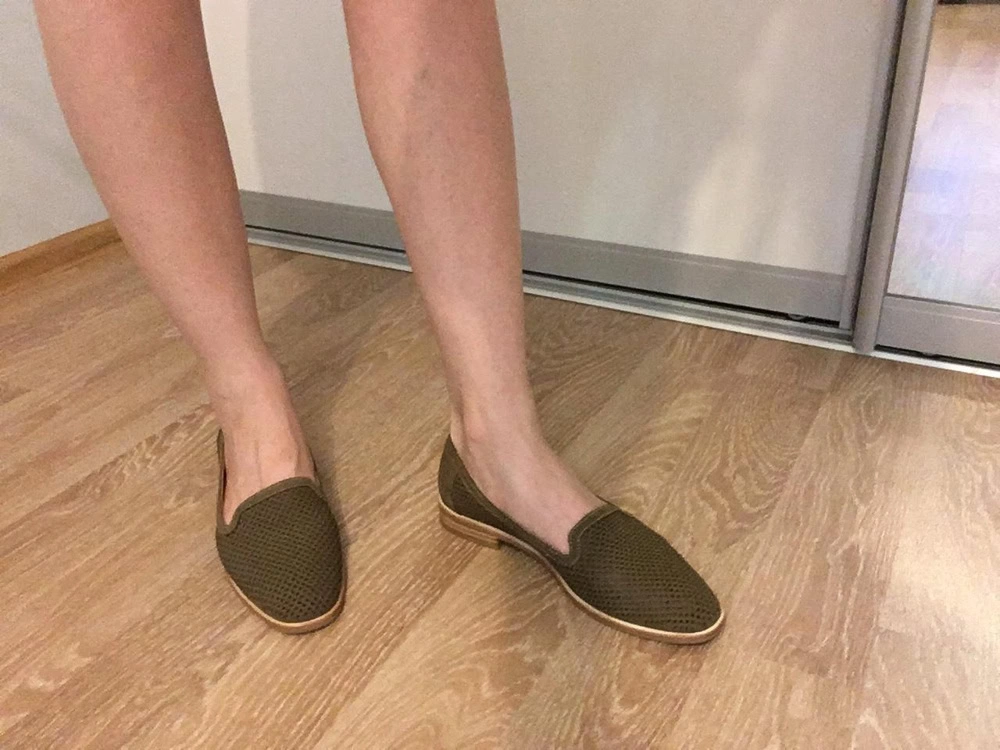 Очень симпатичные летние туфли. Цвет больше оливковый нежели зелёный, не как на фото. Немного жестковаты, но уверена разносятся. Неожиданно хорошо смотрятся на ноге. Прорезиненная не скользящая подошва, приятно продуваются во время ходьбы.