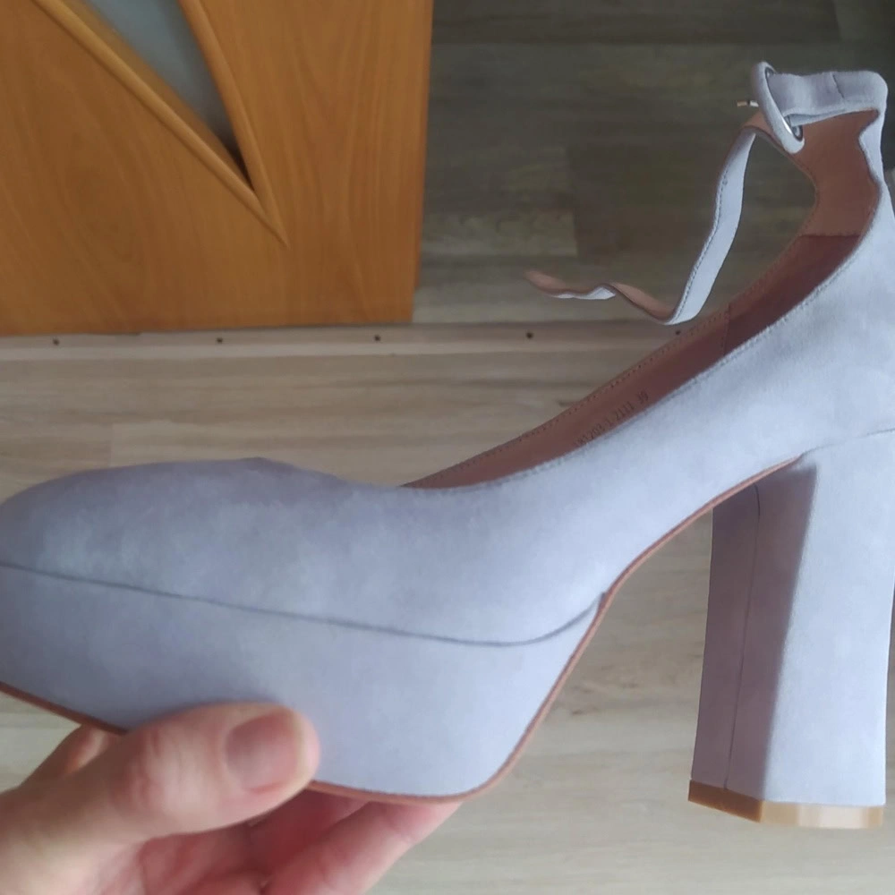 По фо́то я туфли представляла себе иначе. По факту на очень узкую и плоскую, без подъёма, ногу. Туфли совсем неглубокие, а из-за достаточно массивных подошвы и каблука тяжеловатые, нога может высакивать. Мне показались некомфортными.