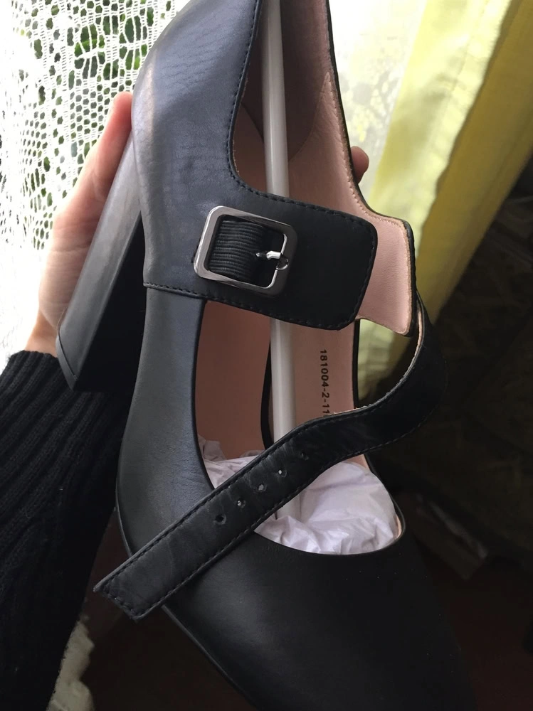 Туфли "плотные " очень ,жесткая колодка.Красиво смотрятся,зрительно уменьшая стопу. Материал немного "под старину"....матовый и какой-то невзрачный..не насыщенно-черный цвет, на 37,5 размер 37 впритык и видно, что туфли точно не "разносятся",поэтому, увы ,отказ,надо было заказывать 38, но не буду потому как "винтажный" материал туфель не достоит своей цены, на мой взгляд