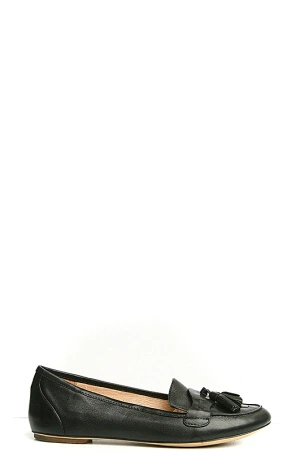 Аккуратные черные туфли. Отлично подойдут для деловых женщин выбирающих активный образ жизни. Мысок закруглен, декорирован бохрамой. Хорошо подойдут для длительных прогулок по городу.