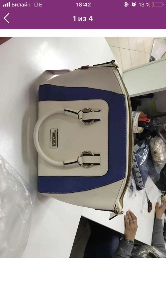 Сумка пришла с потертым грязноватым дном. Также были пятнышки и незначительные дефекты в виде царапинок. Выкупать не стала. Прошу не учитывать в процент выкупа. В целом, сумка не плоха. Но ручки оооочень короткие. Только на запястье носить, если за ручки надоест.