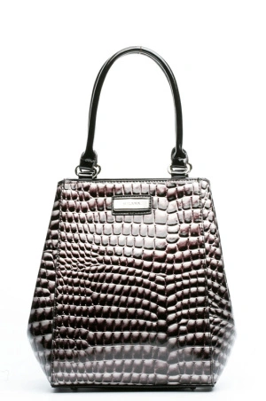 60306-711 сумка жен. дем. искусственная кожа (лак)/искусственный шелк черно-серый Milana