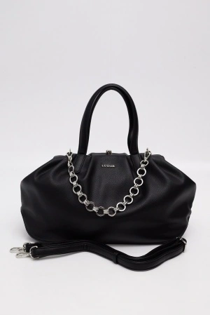 374-89 сумка хобо жен. дем. Экокожа/текстиль черный Ludor