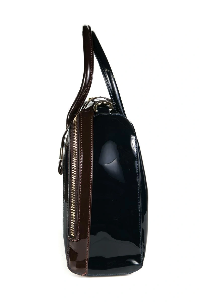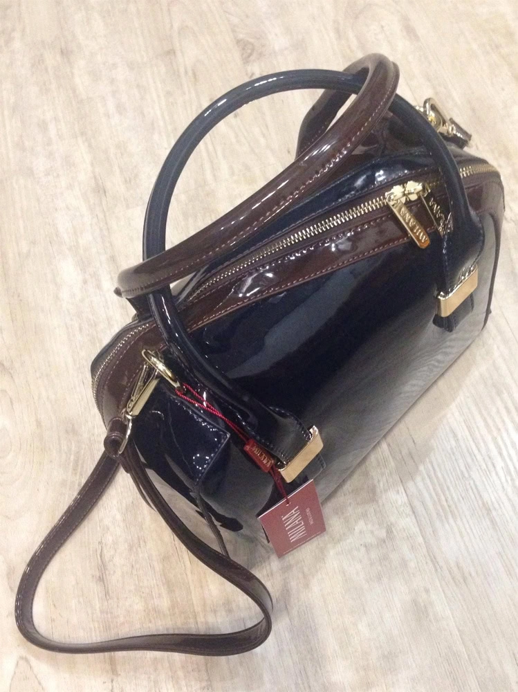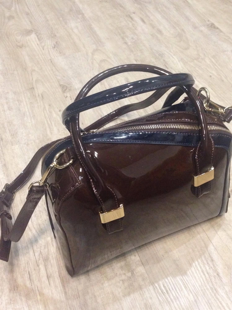 Сумка отличная! Сине-коричневая: ручки разного цвета, стороны -соответственно. Внутри одно большое отделение, кармашек на молнии, 2 маленьких кармашка. Молния застегивается по диагонали. Сначала немного непривычно. Фурнитура качественная, ремешок на плечо на карабинчиках, регулируется. Покупала к батильонам арт.4288397. Рекомендую. Брала со скидкой за 3300.